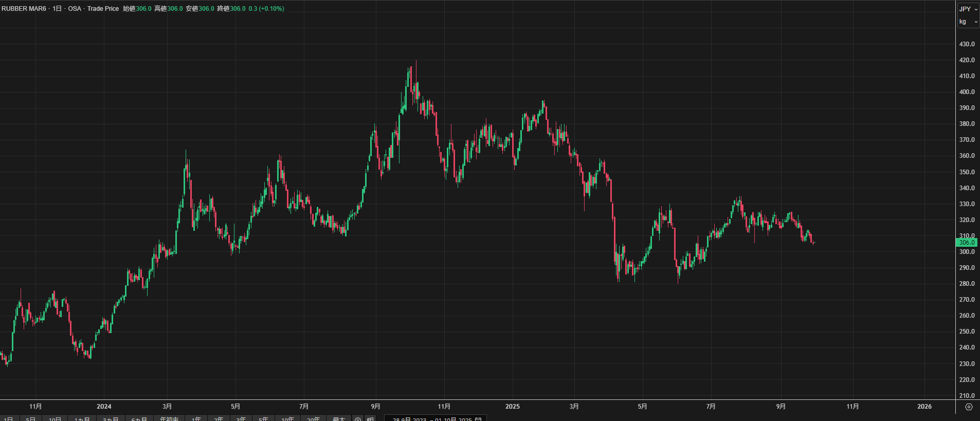 【OSE天然ゴムRSS先物相場(日足)】