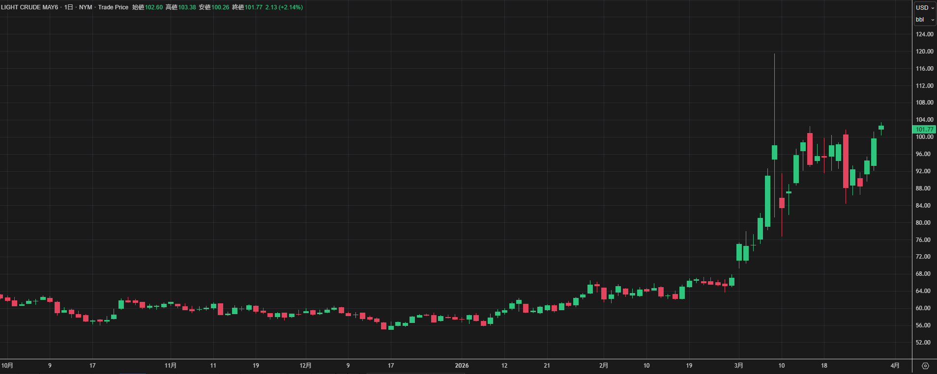 【NYMEX原油先物相場(日足)】