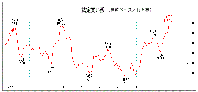 上期入り早々の4/7に30792円まで急落したのは記憶に新しい。その時のチャートは、長く続いた39000円前後の往来から下放れを加速させたところで、最高値をつけた現在のチャートと形状は大きく異なる。ただ、裁定買い残が高水準に増加している点はいまと似ている。