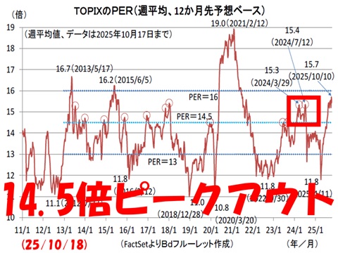 「おかげで輸出企業とメガハイテクは株価急騰!結果、猛烈なNT倍率上昇です。これ、きわめて歪な株価状態です。たいてい14.5倍を上限に株価は大幅調整します。ということは・・・」