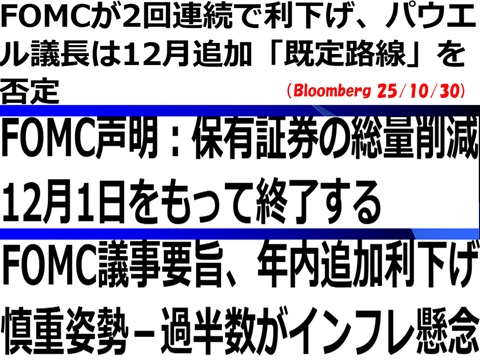 短期金融市場ではいまのところ60%の確率で12月利下げを織り込んでいる模様。けど、パウエル議長自身は「否定」。データというより直感的にリセッション突入、いや、スタグフレーション突入の匂いを嗅ぎ取っているのでは?