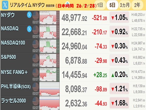 オープンAIによる「エヌビディア」、「9984SBG」「アマゾン」が1100億ドルもツッコんだ。それで「マイクロソフト」が売られ、同社とオープンAIは共同声明「緊密な関係は継続」・・・市場は警戒感Max。