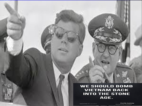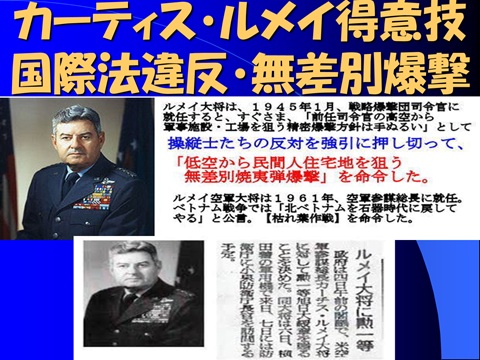 1965年、ベトナム戦争でカーティス・ルメイ(空軍参謀総長)が「北ベトナムを石器時代に戻してやる」と豪語。この殺人狂は東京大空襲を指揮した戦争屋です。