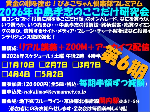 「中島孝志のここだけ研究会」継続メンバー様は第6期参加費がとうとう3750円となります。合わせてお振込み頂くと手数料がセーブできます。