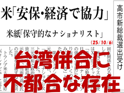 ああ、高市さんだと中共は都合が悪いんだな。彼女のリーダーシップで非核三原則も変更しそうだし、防衛力も格段に増強しそうだし、下手すると「核保有?」 ウランもプルトニウムも掃いて捨てるほど持ってるし…日本・政府・自民党と喧嘩するつもりはなく、高市首相ただ1人狙い撃ちなんだな、とだれもが理解できる構図です。