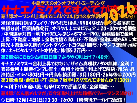 ※12/14(日)年内最後「中島孝志のオンオフサイトミーティング」を開催します。