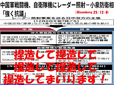 … … …(記事全文2,376文字)『なめたらいかんぜよ!「捏造して捏造して捏造して捏造して、捏造してまいります!」の中国照射問題を捏造音声で切り抜け?子供だまし連発に世界が失笑!CHINA→CHILD、中国→小国と換える?習近平失脚カウントダウン!裸の王様の末路!軍暴走を止められない!いえ、軍の狙いは習近平潰し!困ったら反日工作が逆効果!キシバも公明党も消えた!日米豪を前に台湾海峡危機屈辱の二の舞い必至!』