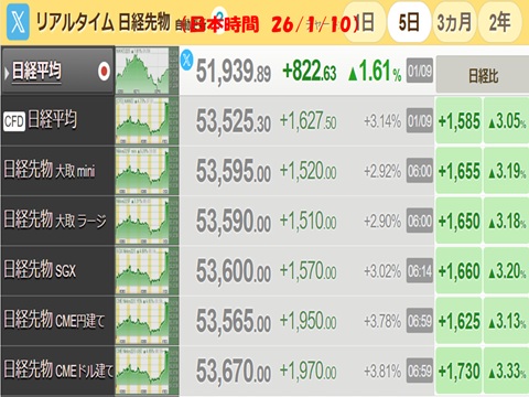 日経平均先物が急伸。1/23通常国会にて衆院解散・・・報道。