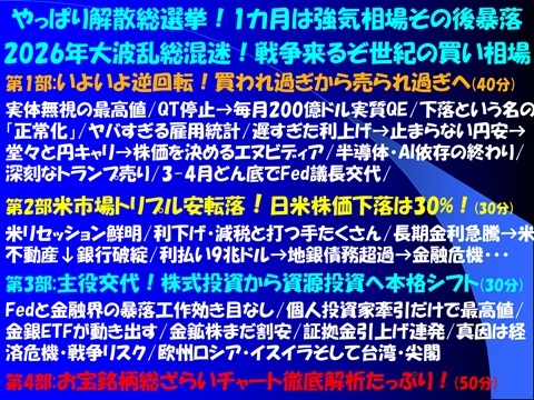 予想通り。ガセかどうかはいずれ・・・ただ、高市早苗首相が衆院解散の検討に入ったという期待で動意づいた模様。