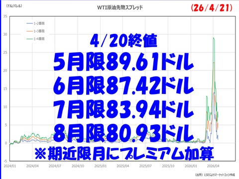 NYMEX原油先物相場は4/21に5月限取引終了となります。当限6月限の取引最終日は5/19となります。