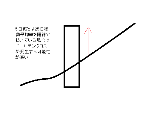 ポイント 底打ち後、日足が陽線で、かつ5日移動平均 線、または25日移動平均線を抜いている場 合は、ゴールデンクロス発生のサイン