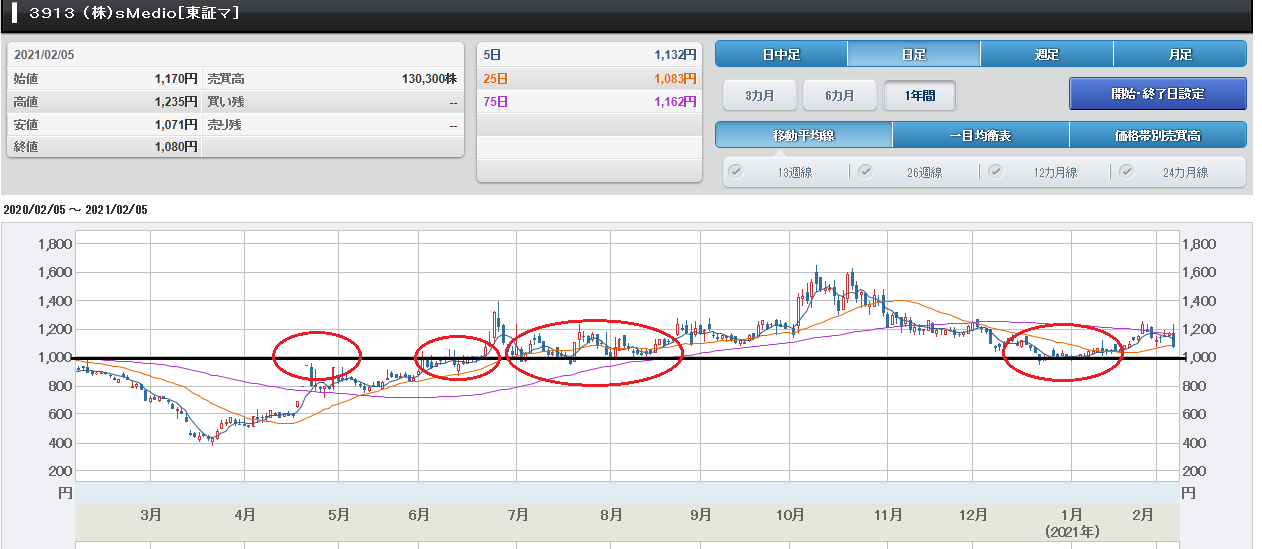 ////////////////////////////////////////////////////////////// 現物株のみ ~ 元手50万円で毎月たったの 2万円の投資で2000万円稼ぐ私の投資方法 https://foomii.com/00199 2021/2/8 臨時増刊号 ////////////////////////////////////////////////////////////// 臨時増刊号【今日買った銘柄】2月8日 今日(2/8)は、sMedio(3913)を1008円で 100株買いました。 sMedioの終値は53円安の1027円でした。 sMedioは、デジタル家電組込みソフトウェ ア事業、映像AI解析・IoTソフトウェア事 業、セキュリティ&プライバシー事業の3事 業を展開している企業です。 この3事業のうち、デジタル家電組込みソフ トウェア事業が主力事業となっています。 最近は、在宅勤務やテレワークの拡大により 、国内デジタル家電の出荷台数の回復傾向が 見られるそうです。このため、sMedioの組 込みソフトウェアを搭載した製品の販売が拡 大し、4K・8Kのロイヤリティ収入が回復基 調にあるそうです。 また、トンネル掘削の現場で、切羽面や地質 の状態を観察、記録し、トンネル工事の際の 地盤の評価や、工程の指標に活用できる「切 羽AI評価システムサービス」が拡大してい るそうです。 今後、IoT社会の実現に向け、sMedioのAI ・IoT関連製品の引き合いも拡大基調になる と思います。 1.業績が期待できる 2021/2/5に発表された2020年12月期 本決算は、増収・増益となりました。 売上高が9億1300万円(前年比6.0% 増)、営業利益が3億2000万円(前年は 6100万円の赤字)、経常利益が3000 万円(前年は5700万円の赤字)、純利益 が1000万円(前年は8400万円の赤字 )でした。 なお、2021年12月期通期業績予想につ いても、増収・増益を予定しています。 売上高が10億3400万円円(前年比13 .2%増)、営業利益が5300万円(前年 比67.2%増)、経常利益が5300万円 (前年比79.3%増)、純利益が3600 万円(前年比252.4%増)を予想してい ます。 2.買値目途について 以下の画像を参照してください。 sMedioのチャートチャートを見ると、4月下旬に1000円を トライしようとして失速。さらに、6月中旬 も1000円を抜け切れていないことが確認 できます。 やはり、心理的節目の1000円を上抜ける には材料不足だったのかと思います。 しかし、6月中旬に1000円を抜けてから は、1000円を下値として動いているよう に見えます。 よって、下値目途は1000円と考えまし た。 そこで、1008円で買ったという次第で す。 今日は、先週末の決算発表を受けて、材料出 尽くしで売られましたが、今日の最安値が 1000円でしたので、これは下値を確認し に行ったのかと思います。 よって、心理的節目の1000円は固いと思 います。 まずは、75日移動平均線を上回る1200 円を目標にしたいと思います。 なお、2021/2/7号【チャートを見るときに 注意すべき点】の今週の注目銘柄で紹介した santec(6777)を1809円で200株 買いました。 寄り付きで1820円で100株買ったので すが、その後、下落し始め、1800円が心 理的節目と思いましたが、その心理的節目を 割ってきたので1798円で100株追加で 買いました。 その後、下げ幅を縮小し、終値は15円安の 1806円でした。 1800円割れてから切り上げてきたところ を見ると、やはり、下値を確認しに行ったの かと思います。 この心理的節目1800円は固いと思いま す。 まずは、1810円ぐらいでもみ合って、 上昇して、25日移動平均線の1943円は 超えると思います。 筆者 よっちゃん(個人投資家) 筆者のブログ https://ameblo.jp/tatisan825/ ////////////////////////////////////////////////////////////// 本ウェブマガジンに対するご意見、ご感想は 、このメールアドレス宛に返信をお願いいた します。 8872gsmi@jcom.zaq.ne.jp ////////////////////////////////////////////////////////////// 著者への取材依頼・お問い合わせは、下記ア ドレスのお問合せフォームにてお願いします。 https://foomii.com/cmm/mm/offers/ ////////////////////////////////////////////////////////////// ■ ウェブマガジンの購読や課金に関するお 問い合わせはこちら info@foomii.com ■ 配信停止はこちらから: https://foomii.com/mypage/ ////////////////////////////////////////////////////////////// 本メールマガジンのご利用について ・本メールマガジンは投資一般に関する情報 提供を目的としたものです。 ・本メールマガジンは特定の商品の勧誘や売 買の推奨等を目的としたものではありませ ん。 ・本メールマガジンは特定銘柄および株式市 場全般の推奨や株価動向の上昇または下落を 示唆するものではありません。 ・本メールマガジンはいかなる内容も将来の 運用成果または投資収益を示唆あるいは保証 するものではありません。 ・最終的な投資決定はご購読者様ご自身の判 断でなさるようにお願いします。 //////////////////////////////////////////////////////////////