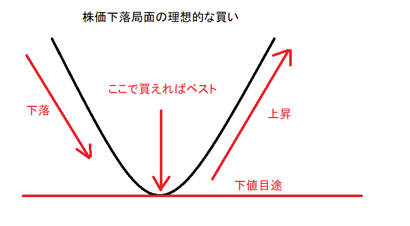 ////////////////////////////////////////////////////////////// 現物株のみ ~ 元手50万円で毎月たったの 2万円の投資で2000万円稼ぐ私の投資方法 https://foomii.com/00199 2021/2/9 臨時増刊号 ////////////////////////////////////////////////////////////// 臨時増刊号【打診買いについて】2月9日 私の買う銘柄は、株価下落局面ものが多く、 読者の方には「何故、株価が下落中のものを 買うのか」理解できないと思います。 まず、私は、株価が下落中の銘柄については 下値目途を立てて買っていることは既に、メ ールマガジンで書いている通りですが、私 は、以下の図のようなイメージを描いて下落 局面の銘柄を買っています。 以下の図を見ていただいて、私の理想形のイ メージを掴んでください。 株価下落局面の理想的な買い言われなくてもわかる通り、ベストな買いは 、下落がちょうど終わった、いわゆる「底」 で買うことです。 ただ、これが百発百中できれば苦労はしませ ん。ほとんどの投資家は、上記の理想形を目 指して株を買おうとするのですが、ほとんど 上手くいかないのが実情です。 実際、「底」で買おうと待ち構えていると、 急に切り返して上昇することが多々ありま す。 そこで、ほとんどの投資家は、以下の図のよ うに、ベストポイントに近いところで「打診 買い」という買いを入れるのです。 もし、「打診買い」を入れたところから切り 返して、株価が上昇すれば、その買いは成功 として、株価が上昇するのを見守るだけで す。 「打診買い」を入れる場合の買い方