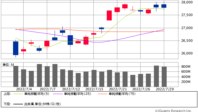 ウェブで読む(推奨):https://foomii.com/00241/2022073116352397588 //////////////////////////////////////////////////////////////// 小資本で始める株式投資 https://foomii.com/00241 //////////////////////////////////////////////////////////////// 皆様こんにちは。 7/29(金)分の売買を報告します。 今日は7/31(日)です。じっくり一昨日の売買報告を纏めています。 B口座(7/29) 現金残高 87196円 株式評価 49口x14430円=707070円 合計評価 794266円(-1470円) 4日振り反落 7/29のB口座は、売買はありません。 A口座(7/29) 現金残高 1914257円、+1811円 309勝4敗、28連勝 7/29は負けトレードが0回。日経レバを買いで1回転でした。 通算の負けトレードは81敗のままです。 スイング退職金PF(7/29) 退職金PF総評価額は、2100405円、-56393円でした。 7/29の退職金PFは反落となりました。 7/29の日経は2連陰線となり、13円安となりました。2日続けて陰線となった日経ですので、高寄り後売りに押された相場展開が続いています。相場メモで取り上げました。 のんきの母 追記(相場メモその166)・・・日経の2連陰線日経平均のチャートをご覧ください。二日連続で高寄り後売りに押される展開で2連陰線でした。28000円近辺では、個人のやれやれ売りが大量に出ている感じがしますがどうでしょうか?売る個人。買う外人・法人投資家という構図のような気がします。 日足を一年に延ばして振り返ると28000円以上では頭打ちを繰り返していましたのでやむを得ない状況だと思います。 一方アメリカ株に強気になり切れない外人投資家は、日本を始めとしたアジア圏の株に資金を振りむける動きも出ているように感じますが、どうでしょうか?中国株には警戒感が強いようなので資金の逃避先は、やはり日本の市場と言うようなイメージをのんきの母は想定しています。 参考になれば幸いです。 //////////////////////////////////////////////////////////////// 本ウェブマガジンに対するご意見、ご感想は、このメールアドレス宛に返信をお願いいたします。 //////////////////////////////////////////////////////////////// 配信記事は、マイページから閲覧、再送することができます。ご活用ください。 マイページ:https://foomii.com/mypage/ //////////////////////////////////////////////////////////////// 【ディスクレーマー】 本内容は法律上の著作物であり、各国の著作権法その他の法律によって保護されています。 本著作物を無断で使用すること(複写、複製、転載、再販売など)は法律上禁じられており、刑事上・民事上の責任を負うことになります。 本著作物の内容は、著作者自身によって、書籍、論文等に再利用される可能性があります。 本コンテンツの転載を発見した場合には、下記通報窓口までご連絡をお願いします。 お問い合わせ先:support@foomii.co.jp //////////////////////////////////////////////////////////////// ■ ウェブマガジンの購読や課金に関するお問い合わせはこちら info@foomii.com ■ 配信停止はこちらから:https://foomii.com/mypage/ ////////////////////////////////////////////////////////////////