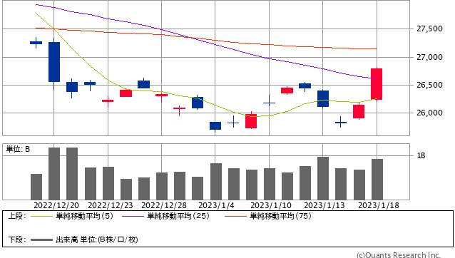 ウェブで読む(推奨):https://foomii.com/00241/20230118235157104528 //////////////////////////////////////////////////////////////// 小資本で始める株式投資 https://foomii.com/00241 //////////////////////////////////////////////////////////////// 皆様こんばんは。 1/18(水)の売買報告です。 B口座(1/18) 現金残高 36147円(±0円) 株式評価 64口x13410円=858240円 合計評価 894387円(+40960円) 2連騰 本日のB口座は売買ありません。 A口座(1/18) 現金残高 2184822円、+2280円 417勝7敗3分、3連勝 本日は負けトレードが0回。(日経レバ買いで1回転)でした。 通算の負けトレードは87敗のままでした。 スイング退職金PF(1/18) 退職金PF総評価額1411266円、+16000円(+1.15%) 本日の退職金PFは3連騰となりました。 今日の日経は、652.44円高の2連陽線となりました。多くの個別銘柄でも2連陽線を示す銘柄が多く出ましたが、ここは日経の方向性が気になりますので、日経について書きました。 のんきの母 追記(相場メモその276)・・・2連陽線強い2連陽線を示現した日経のチャートです。政策変更なしを好感しての日経の上昇となりました。 朝の気配で強気を通したのですが、上手く行きました。珍しく18銘柄と言う多くの銘柄を朝一の注目銘柄に採用した強気の姿勢が報われてきわめて気分はよいですね(笑い) 本格上昇にまでつながるかどうかは今の段階でははっきりしませんが、悲壮感が強かっただけに、ほっと一安心といったところでしょう。 明日からの相場にも最新の注意をはらって臨みましょう。 //////////////////////////////////////////////////////////////// 本ウェブマガジンに対するご意見、ご感想は、このメールアドレス宛に返信をお願いいたします。 //////////////////////////////////////////////////////////////// 配信記事は、マイページから閲覧、再送することができます。ご活用ください。 マイページ:https://foomii.com/mypage/ //////////////////////////////////////////////////////////////// 【ディスクレーマー】 本内容は法律上の著作物であり、各国の著作権法その他の法律によって保護されています。 本著作物を無断で使用すること(複写、複製、転載、再販売など)は法律上禁じられており、刑事上・民事上の責任を負うことになります。 本著作物の内容は、著作者自身によって、書籍、論文等に再利用される可能性があります。 本コンテンツの転載を発見した場合には、下記通報窓口までご連絡をお願いします。 お問い合わせ先:support@foomii.co.jp //////////////////////////////////////////////////////////////// ■ ウェブマガジンの購読や課金に関するお問い合わせはこちら info@foomii.com ■ 配信停止はこちらから:https://foomii.com/mypage/ ////////////////////////////////////////////////////////////////