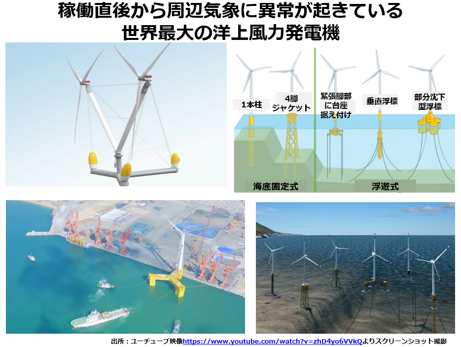 果たせるかな、この巨大洋上風力発電機が稼動した直後から、周辺地域の気温、風力・風向、降水量などが微妙に変化し、それに連れて水鳥、水生動物、海草などの生態系にも影響が生じているようです。
