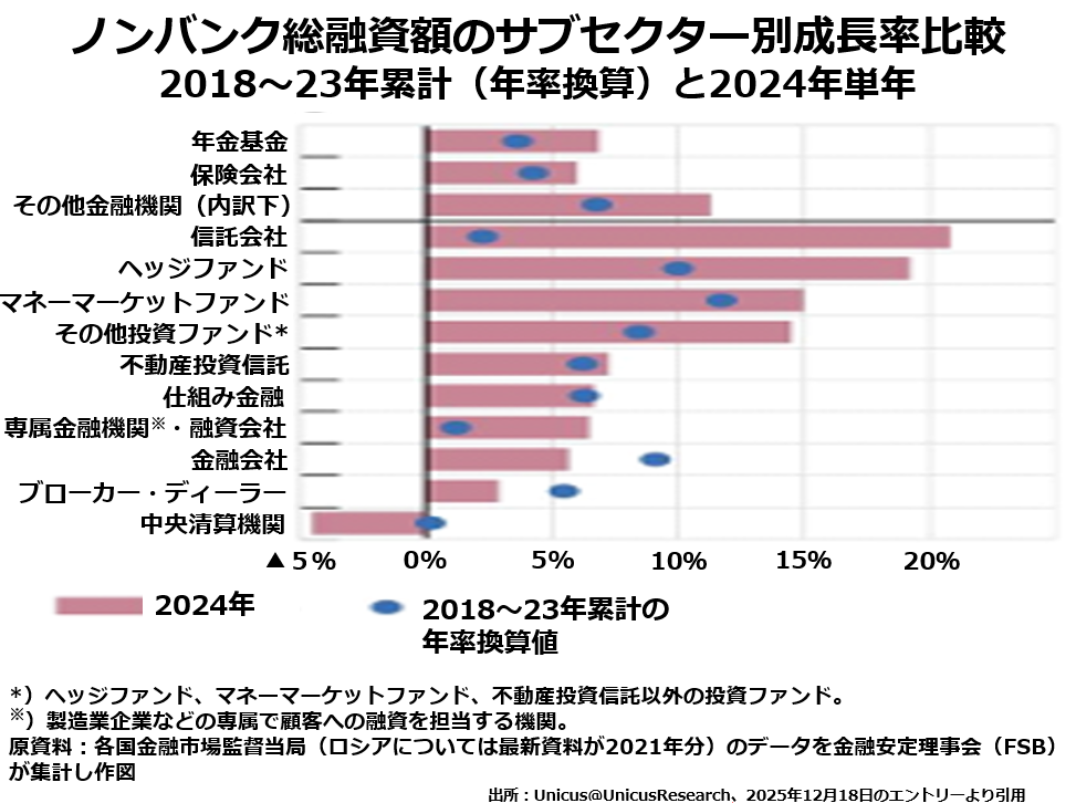 その他金融機関全体としては、2018~23年の6年間の平均成長率が7%程度だったのに、2024年には一挙に11~2%へと2桁の伸びに加速しているのが目立ちます。