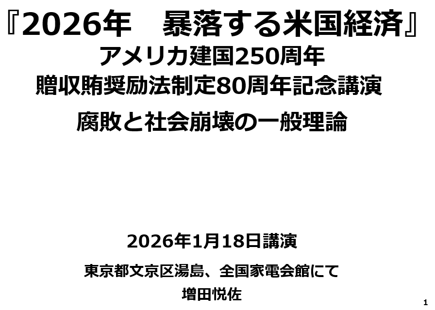 せっかく『2026年 暴落する米国経済』という簡潔にして要を得たお題をいただきながら長ったらしい副題を添えたのは、今年が2つの点でアメリカにとって非常に重要なフシ目となる年だからです。