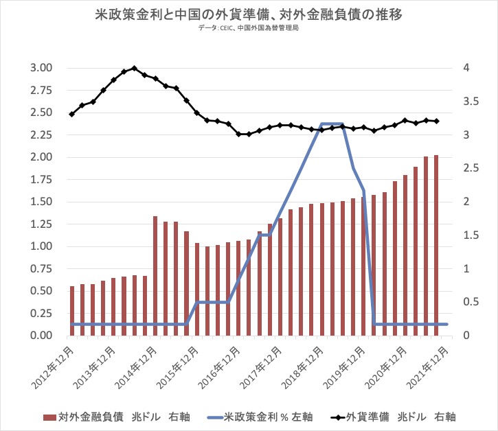 今、中国景気は住宅バブル崩壊に伴う減速傾向が著しい。中国の国内総生産(GDP)の約5割は住宅開発投資を中心とする固定資産投資で、住宅投資に代わる経済の牽引車は見当たらない。中国の金融システムは、ドルを主体とする外貨準備資産に応じて人民元を発行する。ドル金利よりも人民元の金利を高くして、外貨の流入を誘い、国内からの資金流出を避けようとする。 しかし、景気悪化の中では、中国人民銀行は低金利政策を継続するしかない。となると、16年初頭と同じく、中国国内資金は金利の高いドルへと引き寄せられ、資本逃避が激しくなる。 中国の人々は所得階層を問わず、党幹部とその一族を含め、紙切れの人民元を信用せず、ドルや金に換えようとする。中国人民銀行は人民元発行総量の約7割に相当する外貨資産を保有し、元の信用を維持しようと躍起になっている。 習政権は資本逃避に伴う外準の減少を穴埋めするために、20年から米大手証券資本の100%出資での上海進出を認め、海外からの証券投資を活発化させている。ドル金利が上昇すると、資本逃避と海外投資家の中国市場からの引き揚げを促しかねない。 グラフをみれば以上の事情がよくわかるだろう。対外金融負債の大半は香港や上海市場経由の海外からの証券投資によるもので、多くは債券のため、米金利高は売りを誘う。 唯一の頼みは対中軟弱のオバマ政権の後継、バイデン政権だが、果たしてどうなるか。 //////////////////////////////////////////////////////////////// 本ウェブマガジンに対するご意見、ご感想は、このメールアドレス宛に返信をお願いいたします。 //////////////////////////////////////////////////////////////// 配信記事は、マイページから閲覧、再送することができます。ご活用ください。 マイページ:https://foomii.com/mypage/ //////////////////////////////////////////////////////////////// 【ディスクレーマー】 本内容は法律上の著作物であり、各国の著作権法その他の法律によって保護されています。 本著作物を無断で使用すること(複写、複製、転載、再販売など)は法律上禁じられており、刑事上・民事上の責任を負うことになります。 本著作物の内容は、著作者自身によって、書籍、論文等に再利用される可能性があります。 本コンテンツの転載を発見した場合には、下記通報窓口までご連絡をお願いします。 お問い合わせ先:support@foomii.co.jp //////////////////////////////////////////////////////////////// ■ ウェブマガジンの購読や課金に関するお問い合わせはこちら support@foomii.co.jp ■ 配信停止はこちらから:https://foomii.com/mypage/ ////////////////////////////////////////////////////////////////
