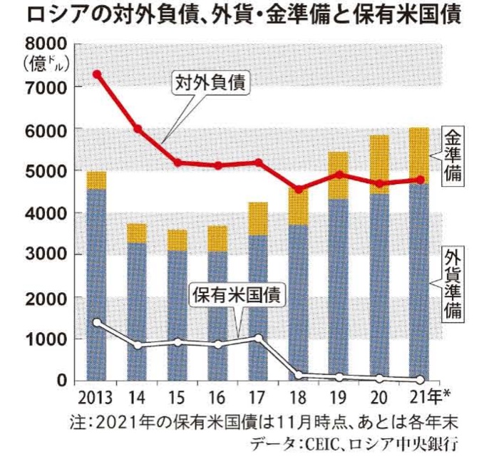 ウェブで読む(推奨):https://foomii.com/00260/2022021213204990910 //////////////////////////////////////////////////////////////// 田村秀男ウェブマガジン 経済がわかれば世界がわかる https://foomii.com/00260 //////////////////////////////////////////////////////////////// ロシアの対ウクライナ軍事侵攻危機が切迫する。バイデン米政権はロシアに対して金融制裁を警告、米国連邦準備制度理事会(FRB)はインフレ抑制を名目に利上げへと動く。むろん、基軸通貨ドルは台湾へ軍事圧力をかける中国に対しても米国の強力な武器である。強権ロシアと中国は対抗できるか。 グローバル化された世界で取引されるカネ、モノ・サービスの大半がドルに依存する。ドルへのアクセスが遮断された銀行は国際業務不能となり、ドルを入手できなくなった国は経済危機に陥る恐れがある。これまでの金融制裁で代表的な対象国は北朝鮮とイランで、一時的とは言え、外交面で譲歩に追い込まれた。 プーチン政権には、旧ソ連時代の苦い教訓がある。1980年代前半、レーガン米政権は高金利政策をとって原油価格を暴落させた。ドル建ての石油収入に依存するソ連経済は疲弊し、85年に発足したゴルバチョフ政権は改革路線に踏み切ったが、自由を求める声は東欧圏にも広がり、89年ベルリンの壁崩壊、91年ソ連解体へと突き進んだ。 ロシア経済は2000年以来のプーチン氏による強権的な支配体制のもとで低迷から脱したように見えるが、ロシア連邦・地方政府収入総額のうち石油・ガス収入シェアは約3割に上る。プーチン政権はその弱点を踏まえ、時間をかけて脱ドル依存の布石を打ち、数年前からドル離れに拍車をかけている。2000年当時、GDPの50%を超えていた対外債務返済に努め、2007年以降は4%以下に抑えている。対外債務はドル高や金利高で負担が重くなるが、対外債務の圧縮は利上げショックを和らげる。 米国債保有も2010年10月の1763億ドルをピークに減らし、21年11月には24億ドルまで落とした。外貨準備資産はドルを人民元に置き換えている。ロシアの対外投資ファンドである国民福祉基金の通貨別資産構成は、21年1月でドル建てが512億ドルだったが7月にはゼロとし、6月以降は人民元建て350億ドルの水準を保っている。(グラフ参照) 他方で、ロシアの石油、天然ガスの輸出価格は石油のドル建て国際相場に左右される。国際石油取引は投機が支配し、ドル金利が投機の流れを決定づける。ドルの低金利は投機資金のコストを安くするので原油相場を押し上げ、利上げは相場上昇を抑制する。FRBの政策金利引き上げが続けばプーチン氏を苦しめる。ロシアがウクライナに軍事侵攻し、バイデン政権の金融制裁によって、ロシアの銀行がドル決済網から排除されても、ロシアは石油・天然ガスの取引通貨を全面的にユーロ建て、円建て、あるいは人民元建てなどドル以外の通貨建てに転換すれば打撃は軽くなる。 ただし、欧州や日本の金融機関が決済に応じれば、の話だ。米国は対イラン制裁で、イラン原油の輸入に協力する国の銀行にはドル取引を禁じる強硬手段をとってきた。欧州や日本も対イラン制裁で米国に従うしかなくなった。 中国の習近平共産党総書記・国家主席にとって、米金利高は形ばかりの経済制裁よりもはるかに重大な「脅威」になりうる。 話は6年以上前にさかのぼる。FRBは2008年9月のリーマン・ショック後、超低金利政策をとっていたが、15年12月に引き締め策に転じ、政策金利を0・125%から一挙に0・375%に引き上げ、さらに追加利上げを行う構えをみせた。 当時、中国経済は景気減速のために金融機関の不良債権が急増していた。習政権は苦し紛れに15年8月、人民元の対ドル基準レートの切り下げに踏み切って、輸出競争力の強化を狙ったが、資本逃避を加速させただけだった。14年9月には4兆ドル近くあった外貨準備は15年12月には6600億ドル余りも減っていた。そこに米利上げの追い打ちがかかった。 当時のワシントンは対中融和の民主党オバマ政権である。中国人民銀行のトップなどから中国の窮状を訴えられたFRBのイエレン議長(現在は米財務長官)は、リーマン後の世界景気の牽引(けんいん)車とみられていた中国の金融危機が国際金融市場に波及しかねないと恐れたようだ。 そこで2度目の利上げを16年12月まで先送りした。その間に習政権は人民元安に歯止めをかけると同時に、資本逃避の取り締まりを強化した結果、中国は窮地から脱した。オバマ政権の対中配慮が習政権を救った。