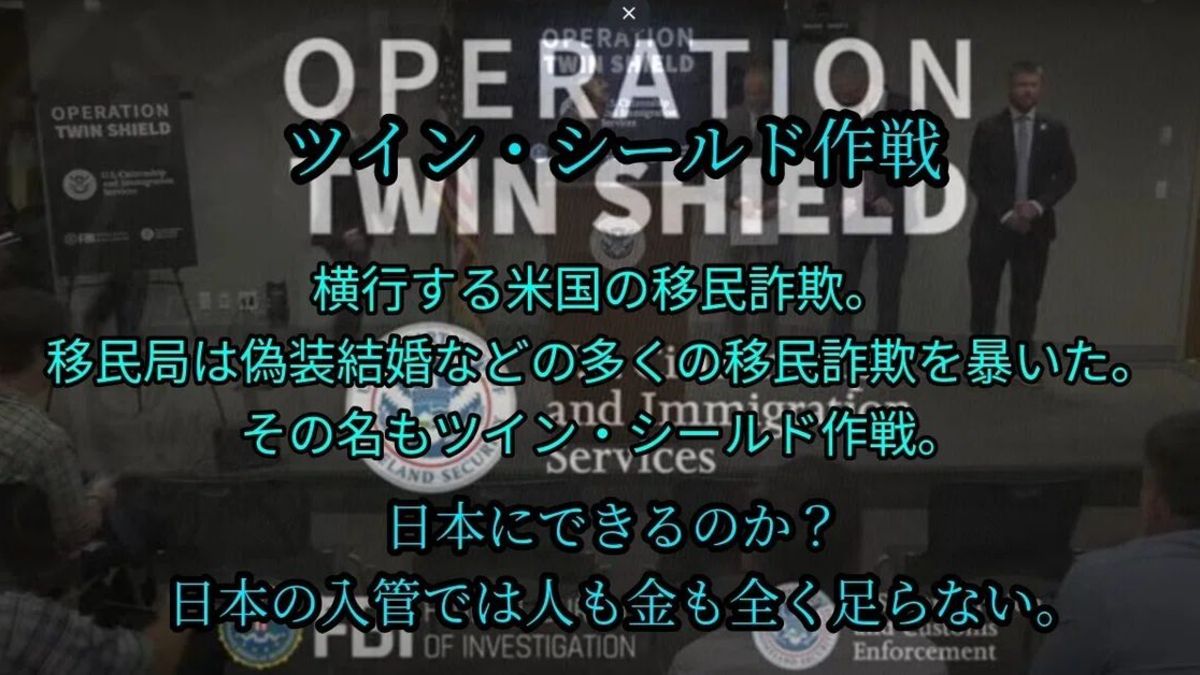 … … …(記事全文9,423文字)ツイン・シールド作戦~米国移民詐欺大捜査作戦。日本にできるのか?日本の入管職員を1万人増やし、予算1兆円にしないと対応不可能で、偽装移民だらけに~