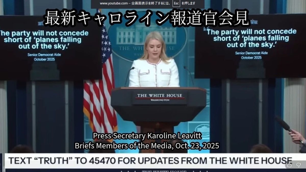 ~Press Secretary Karoline Leavitt Briefs Members of the Media, Oct. 23, 2025~最新のキャロライン報道官会見をお届けする。
