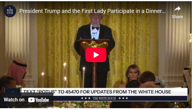 トランプ大統領は、サウジアラビア皇太子をホワイトハウスに招待し、晩餐会を行った。20分ほどのスピーチで、主に挨拶メインのスピーチだったが、考えさせられる部分もあったため、重要部分を太字にし、最後に私見として重要部分を指摘したいと思う。