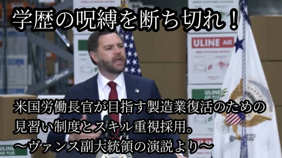 … … …(記事全文4,452文字)学歴の呪縛を断ち切れ!米国労働長官が目指す製造業復活のための見習い制度とスキル重視採用~ヴァンス副大統領の演説より~