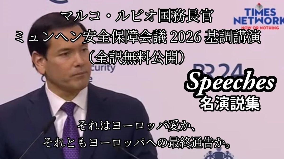 … … …(記事全文11,954文字)マルコ・ルビオ国務長官がミュンヘン安全保障会議 2026で、基調講演を行った。