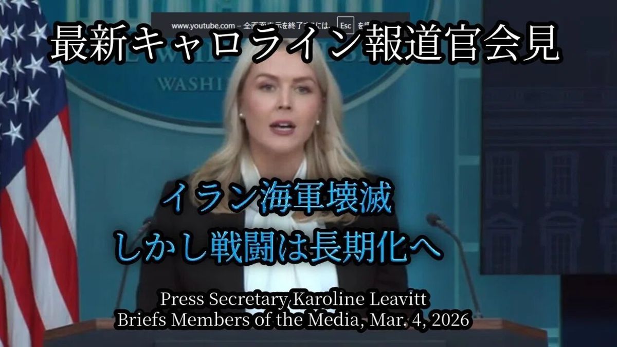 … … …(記事全文18,997文字)トランプ政権が断行した対イラン軍事作戦「エピック・フューリー」。会見でキャロライン報道官は、47年間にわたる宥和政策の終焉を宣言し、イランの核野望とテロ支援体制を「物理的に根絶する」という政権の強硬姿勢を鮮明にした。圧倒的な軍事的成果を誇示し、米国民の帰国支援という人道的側面を強調しつつ、メディアの「偽ニュース」を激しく糾弾するその口調からは、前例のない中東情勢の再編に向けた退路なき決意が滲む。かつてない規模の軍事介入の全容と、その先に描かれる「新たな中東」の胎動を浮き彫りにする歴史的な会見。