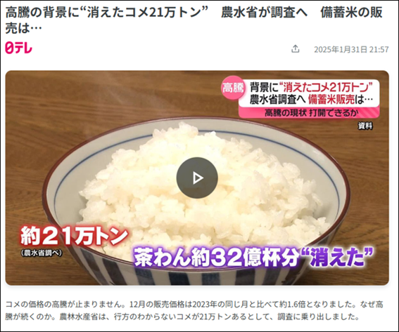 … … …(記事全文2,639文字)筆者は昨年9月の配信「令和米騒動の真相」執筆時、農水省の主張の通り、米の生産量は足りており、米は流通経路のどこかに滞留していると思っていた。だが、農水省は、流通米として不合格の米も生産量に含めるという、“生産量の水増し”を行っていた。米21万トンは消えていない。そもそも流通していなかったのだ。