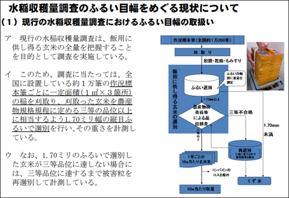 <農水省の水稲収穫量調査は、米農家が市場に流通させない不合格米も収穫高として計上している>