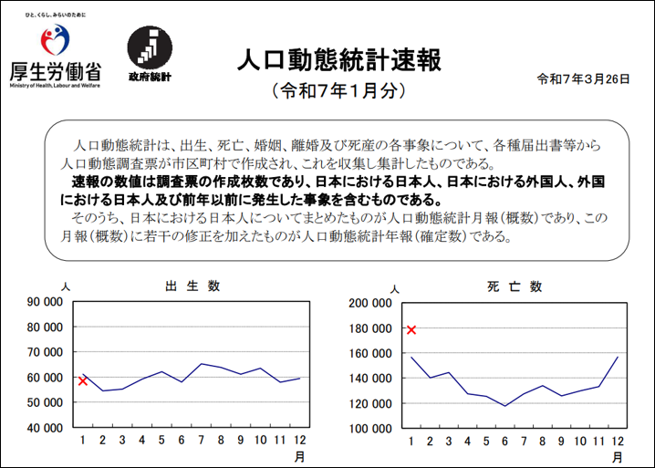 <2025年3月26日 厚生労働省 人口動態統計速報(令和7年1月分)>
