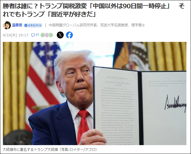 ●相互関税は「中国への贈り物」
