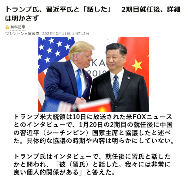 <2025年2月11日 朝日新聞 彼らは何を話したのだろうか?>