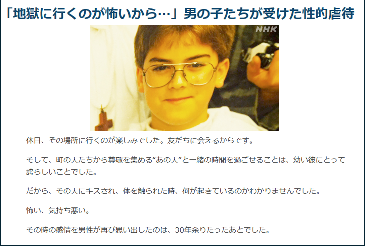 また、聖職者の児童性的虐待の特徴は、被害者の8割が少年であることだ。いわゆる「少年愛」である。