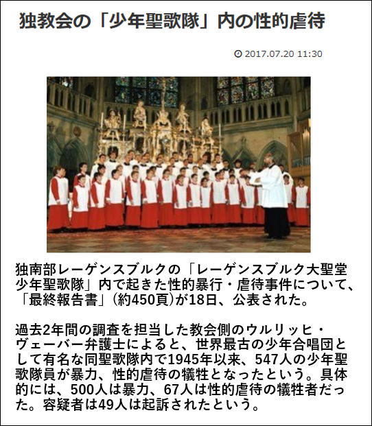 2018年9月13日BBC「聖職者が何千人もの子どもを虐待 独カトリック教会」