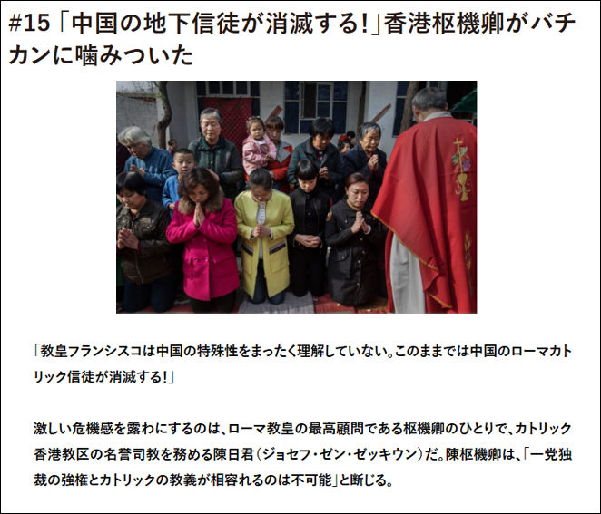 フランシスコ教皇はそうした現実を知りながら、中共と暫定合意を結び、中国が選んだ司教をバチカンも追認する形を選んだ。このことは「バチカンは我々を見捨てた」と地下教会系信者を失望させた。