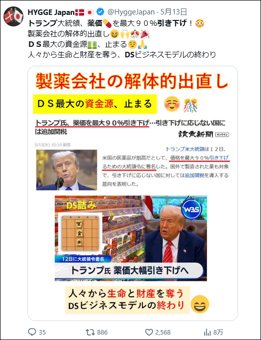 この大統領令は製薬企業やDSの壊滅に繋がる画期的なものだと、ネットでは好意的に受け止められている。