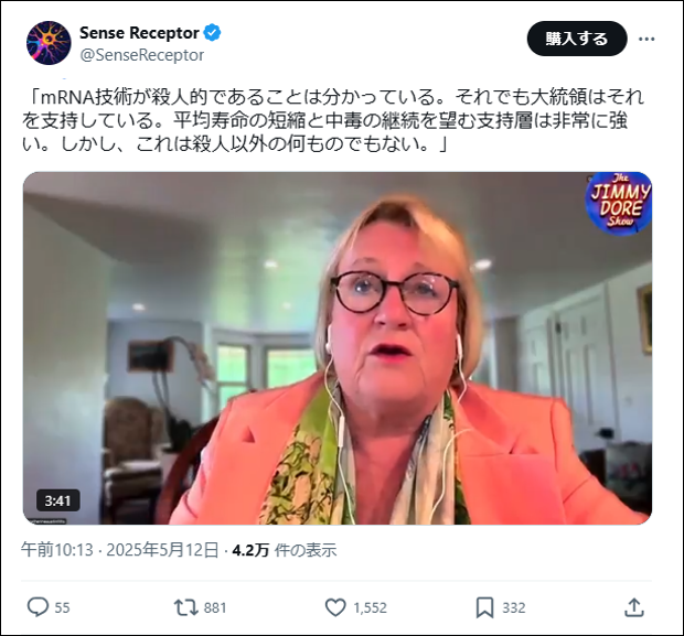 以前お伝えしたように、トランプはワープ・スピード作戦以降、mRNAワクチン開発推進派だ。