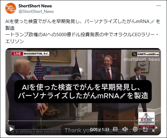 彼はコロナワクチンを批判したかと思えば、トランプの「ワープ・スピード」作戦を絶賛し、mRNAがんワクチンについても批判しない。明らかに“ダブルスタンダード”だ。