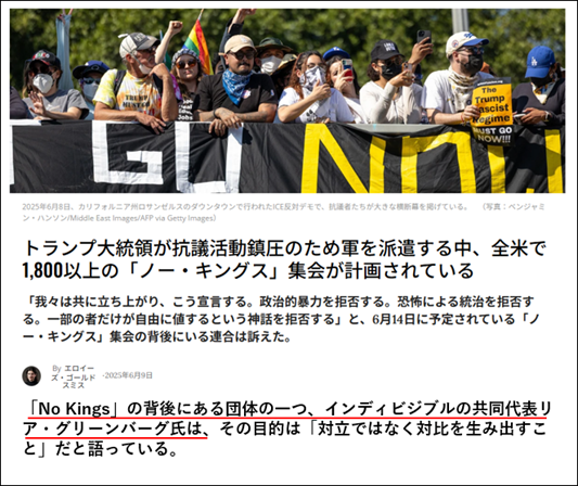 … … …(記事全文2,217文字)NO KINGSは民主党の支持母体「全米教職員組合」の会長が主催する“反トランプ活動”で、200近くの左翼的な団体・組織から資金提供を受けている。先週のロサンゼルスの暴動もNO KINGSが主導したものだった。