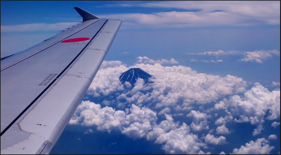 下の写真は上空7千メートルから撮影されたものだ。7千メートルからは富士山が見下ろせる。