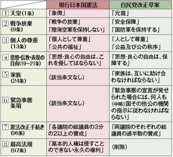<現行憲法と自民党草案の違い>