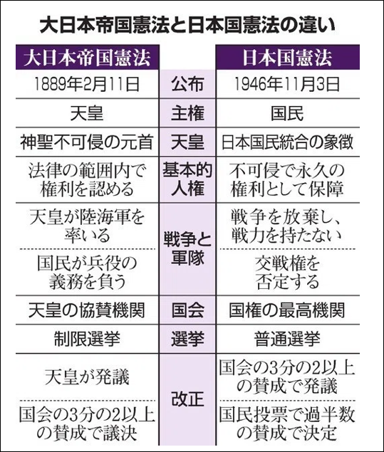<大日本帝国憲法と現行憲法の違い>