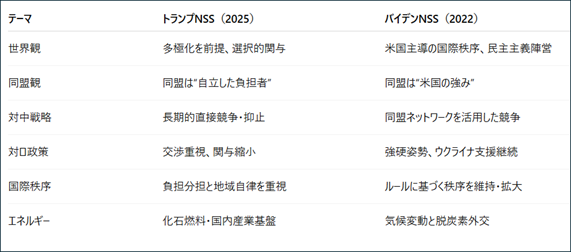 <トランプ政権NSSとバイデン政権NSSの比較>