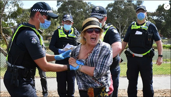 <ビクトリアの公園でマスク未着用のために逮捕される69歳の女性>