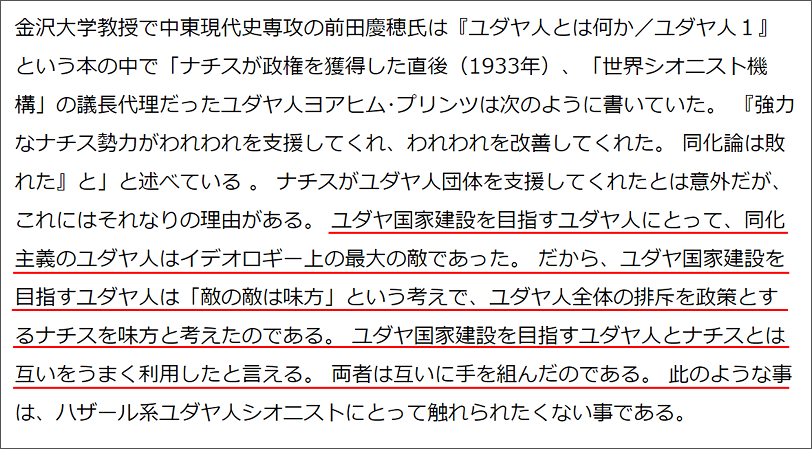 <金沢大学前田教授「ヒトラーはイスラエル建国の恩人」>