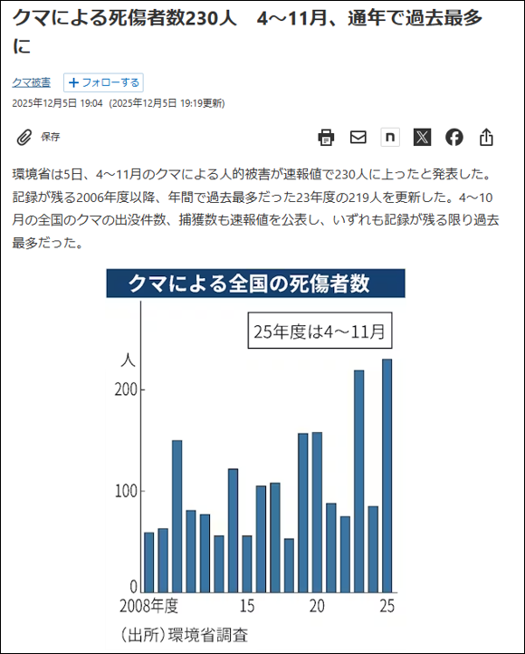 <2025年12月12日 クマ被害・出没が生活や経済に影響?>