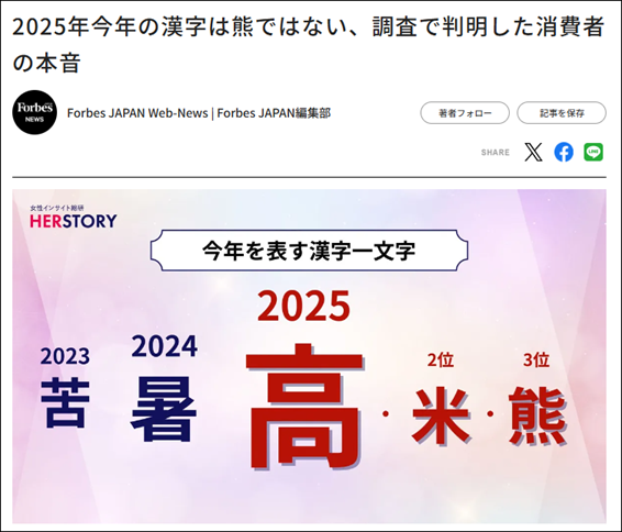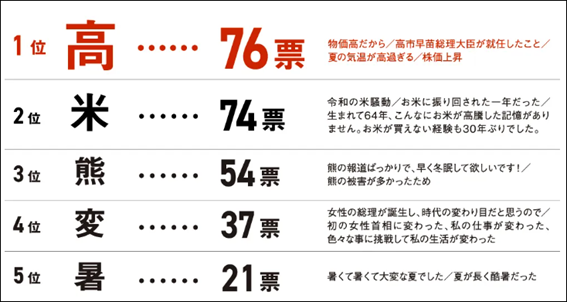 出没地域の人々の生活に影響が出たのは確かだろう。だが、全国民の生活と経済を直撃したのは「熊」ではない。誰がどう考えても、物価高や政権交代の象徴である「高」だ。